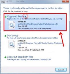 Bước 1: kích hoạt Photoshop CS5 theo từng cài đặt bạn lựa chọn. Đối với bạn cài đặt bản 32 bit dưới đây. Các bạn copy file có tên là “amtlib.dll” lưu ở folder bên ngoài.