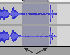 Các đường sóng trên track rất quan trọng cho việc làm sạch âm thanh của bài hát. Hãy tìm một đoạn nhạc mà có độ phẳng càng cao càng tốt, tức là không có âm thanh nào khác ngoài tiếng ồn xung quanh. Để chọn đoạn này, bạn chỉ cần click chuột và kéo để bao phủ toàn bộ chiều dài của phần phẳng đó như trong hình minh họa.