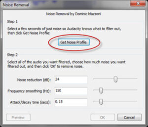 Hãy nhấn nút Get Noise Profile. Cửa sổ pop-up sẽ biến mất và bạn sẽ quay lại giao diện chính của Audacity. Lúc này, hãy chọn toàn bộ âm thanh ghi âm bằng cách nhấn Ctrl-A trên bàn phím: