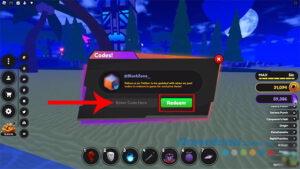 Bước 2: Nhấp vào Codes với biểu tượng con chim Twitter. Sau đó, hãy nhập chính xác hoặc sao chép mã code đã cung cấp ở trên và dán vào ô trống Enter Code Here.