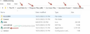 - Vào đường dẫn C:\Program Files (x86)\Common Files\Autodesk Shared\AdskLicensing và chạy file uninstall.exe.