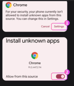 - Bật quyền cho phép cài đặt ứng dụng từ nguồn này.