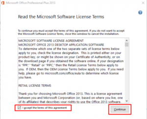 Đồng ý với các điều khoản sử dụng của Microsoft Office 2013 và nhấn Tiếp tục.