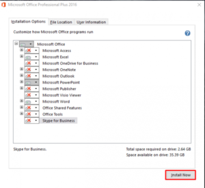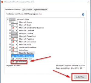 Nếu chỉ cần Excel, Word, PowerPoint, hãy tích vào 3 ứng dụng này. Nhấp vào nút “Cài đặt ngay” (Install Now) để bắt đầu quá trình cài đặt Microsoft Office 2016.