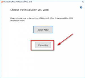 Chọn “Customize” để tự chọn các ứng dụng Office muốn cài.