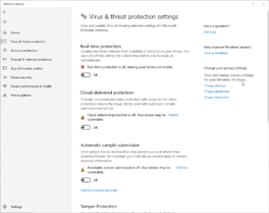 Tắt phần mềm diệt virus và Windows Security trên máy tính của bạn.