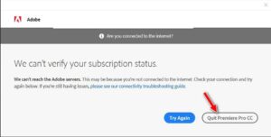 Bước 5: Sau khi hoàn tất, nó tự động mở và xuất hiện hộp thoại. Bạn bấm vào nút Quit Premiere Pro CC để thoát phần mềm