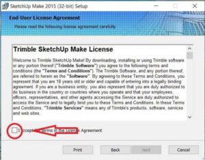 Bước 2: Chọn “I accept the terms in theLicense Agreement” đồng ý với các qui định của Sketchup sau đó nhấn Nét qua bước tiếp theo.