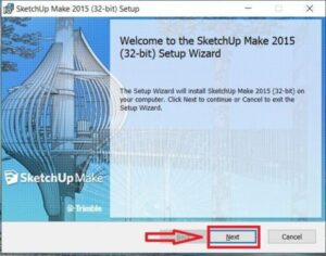 Bước 1: Giao diện khởi động trình cài đặt phần mềm thiết kế đồ họa Sketchup. Click chọn Next để tiếp tục trình khởi động cài Sketchup trên máy tính.