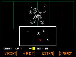 Khi bạn gặp quái vật, trận chiến sẽ bắt đầu. Trong lúc chiến đấu, bạn sẽ điều khiển một trái tim – biểu tượng cho linh hồn của bạn và phải né tránh các đòn tấn công từ quái vật. Không chỉ có những quái vật thông thường, mà còn có cả những tên boss mạnh mẽ đang chờ đợi để thách thức bạn. Người chơi có thể lựa chọn tấn công quái vật để kiếm EXP và vàng, hoặc tha thứ cho chúng. Hãy cố gắng sống sót cho đến khi đoạn hội thoại xuất hiện.
