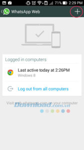 Tiếp theo, mở WhatsApp trên điện thoại của bạn. Nhấn vào biểu tượng 3 dấu chấm dọc, sau đó chọn WhatsApp Web. Một cửa sổ mới sẽ xuất hiện, hãy nhấn vào biểu tượng dấu cộng ở góc trên bên trái màn hình. Lúc này, giao diện quét mã QR sẽ hiện ra, bạn chỉ cần quét mã QR hiển thị trên trang web để đăng nhập vào máy tính của mình.